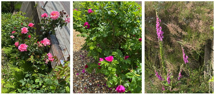 May’s garden panorama is a meditation on pink. The show includes the early roses, especially my favourite, the ever-fragrant Rosa Ragusa; and the statuesque foxgloves set off by the gentle tamarix.